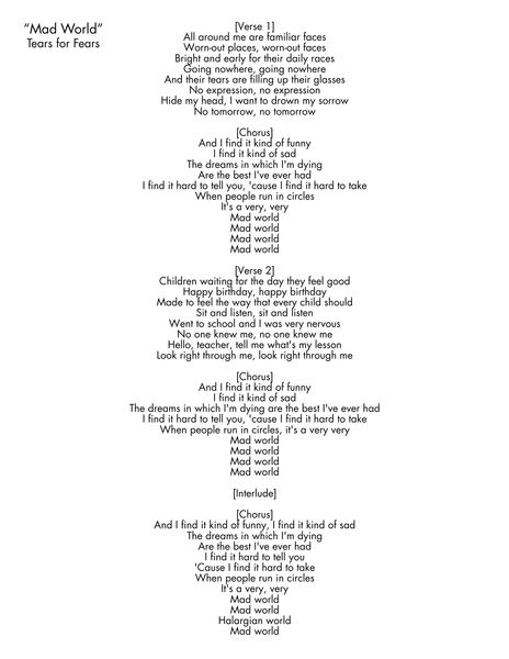 - Mad World Lyrics